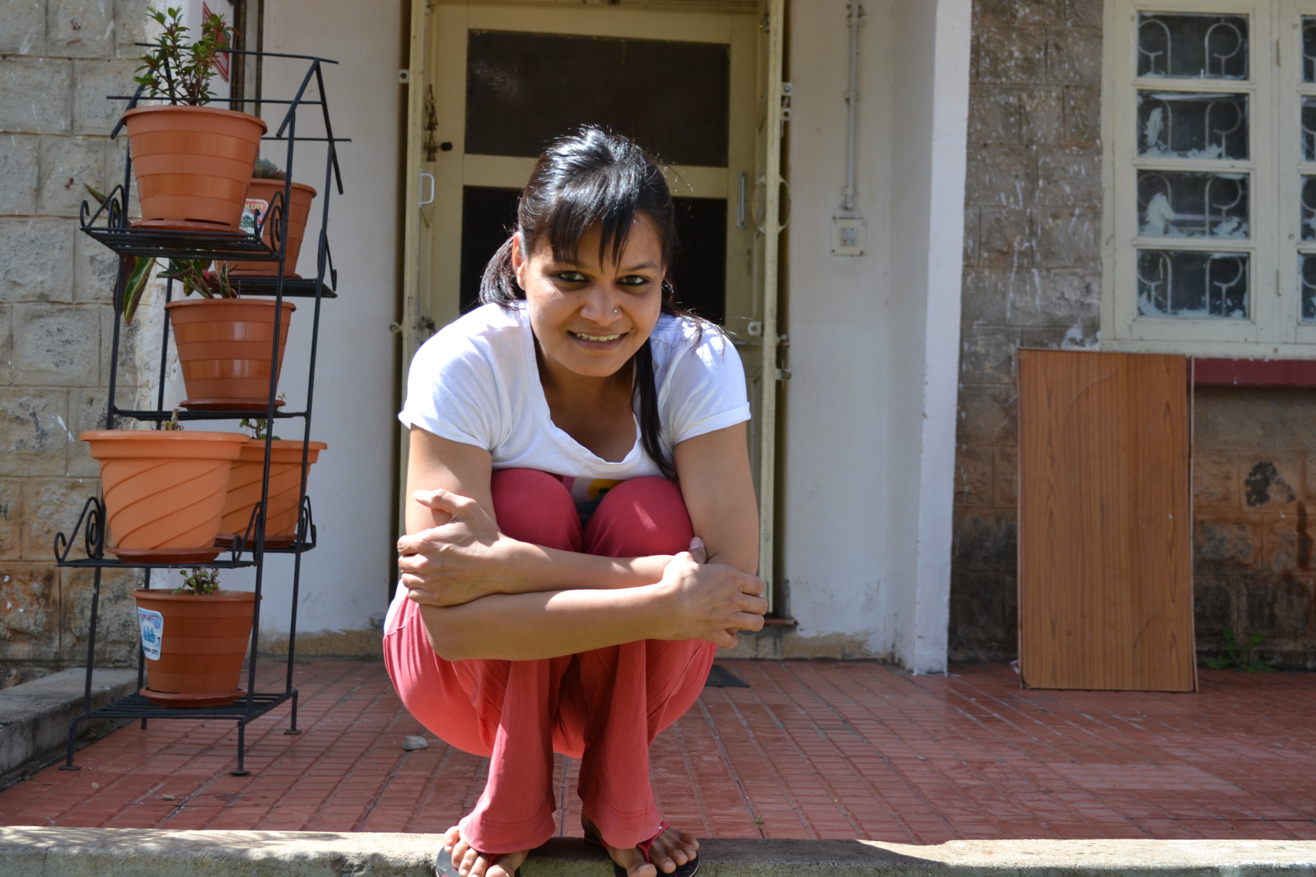 - Practice squating everyday. Try and get your feet as close together as possible and hold your balance. Here is a picture of me practicing squating on the ledge in my garden. Remember squating helps to make your ankles more flexible, makes your legs stronger and helps your abs become strong as well! I held my balance for a minute, during which this picture was taken, after which I lost my balance. This is on my list of things to do as well.