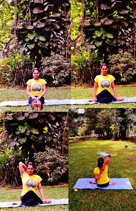 This asana is called the Cow Face Pose because in the final step your body resembles the face of a cow (visualize your legs being the lips of a cow).