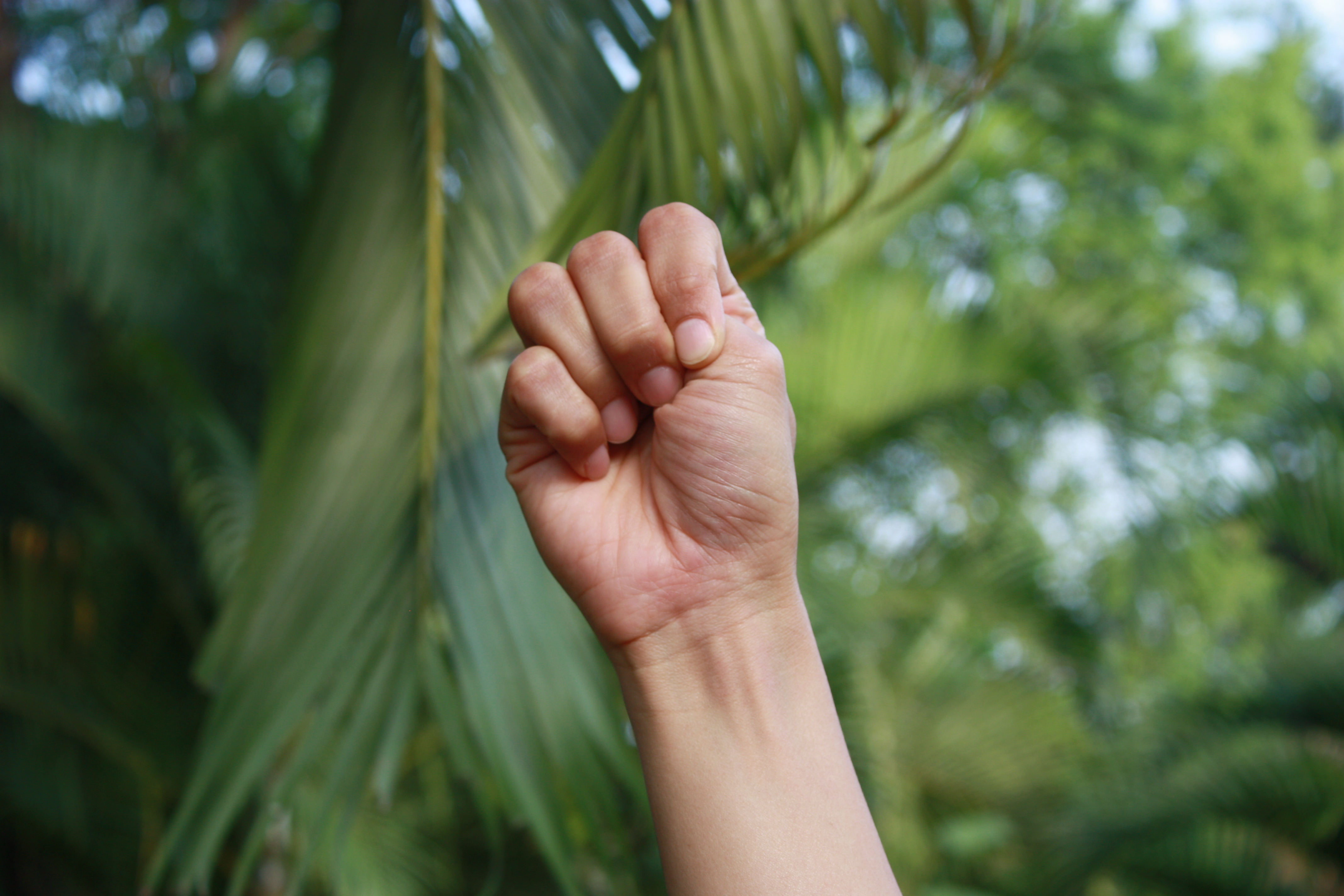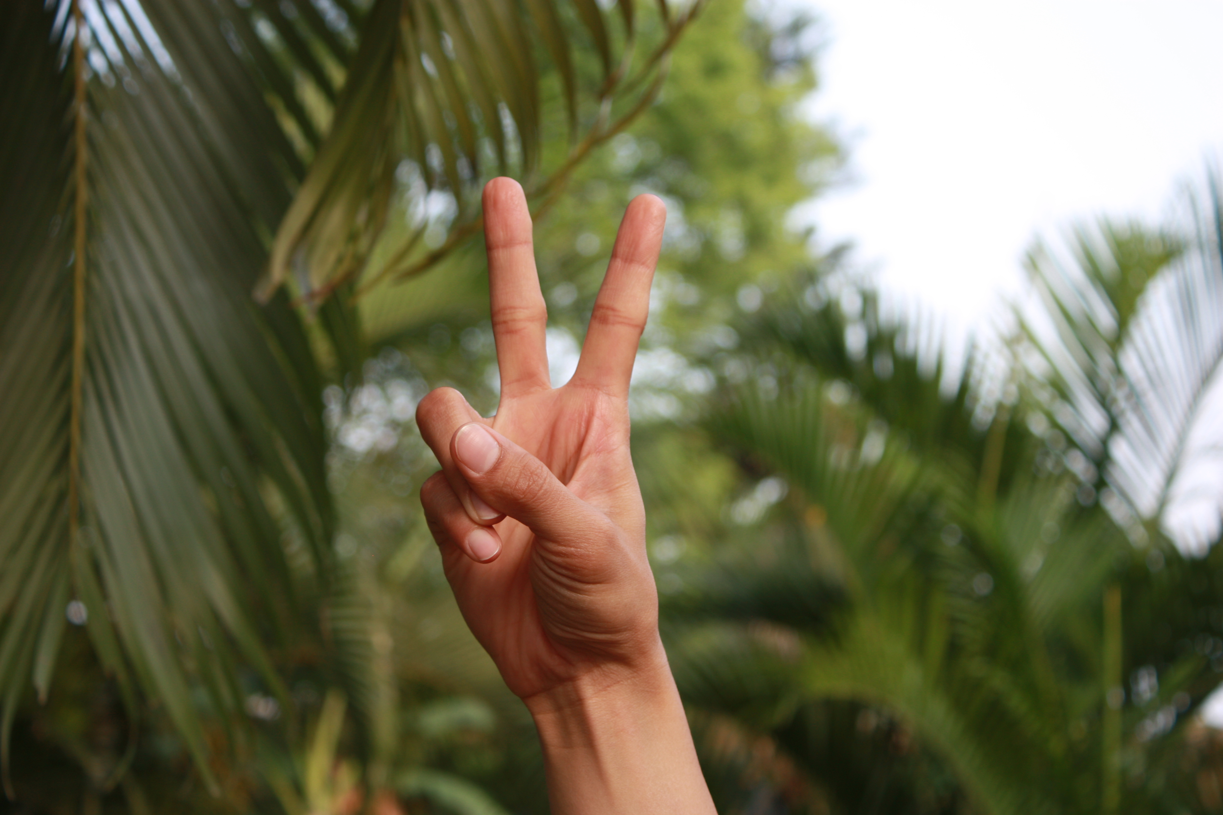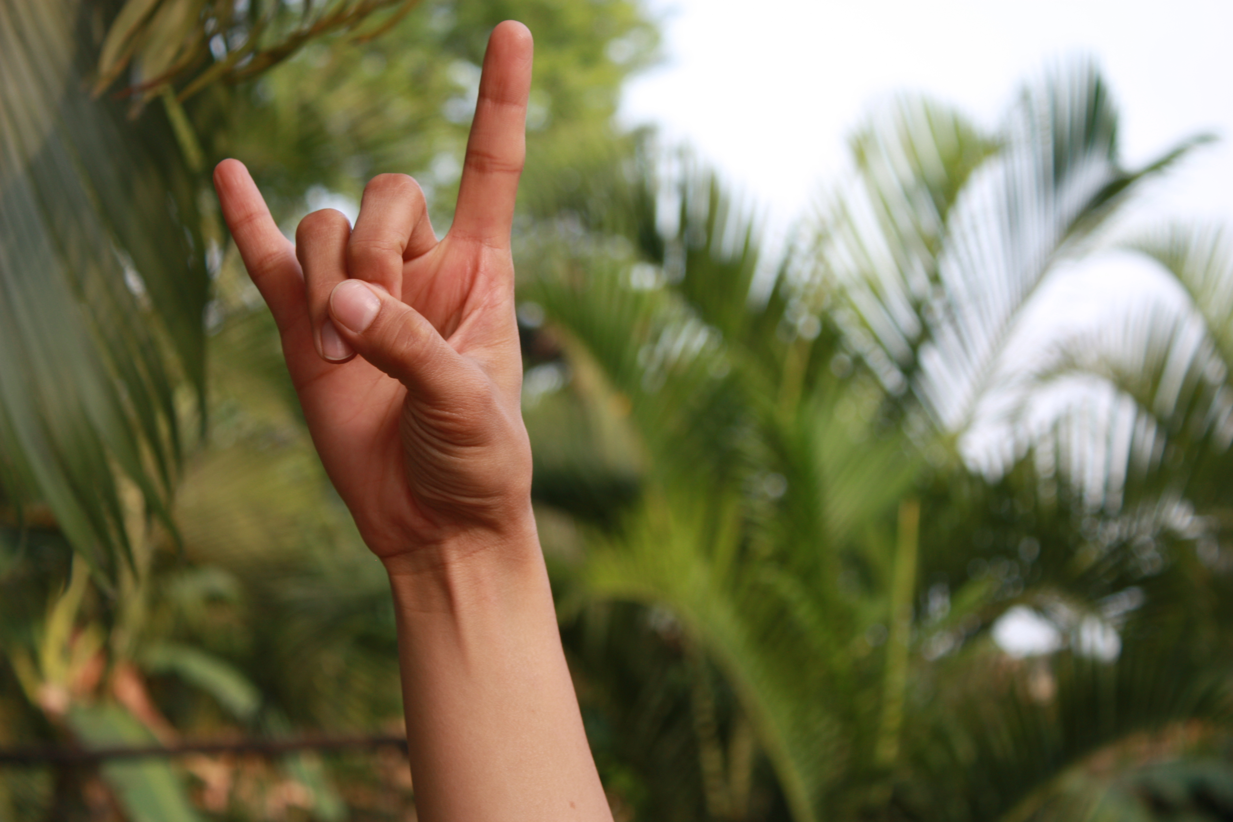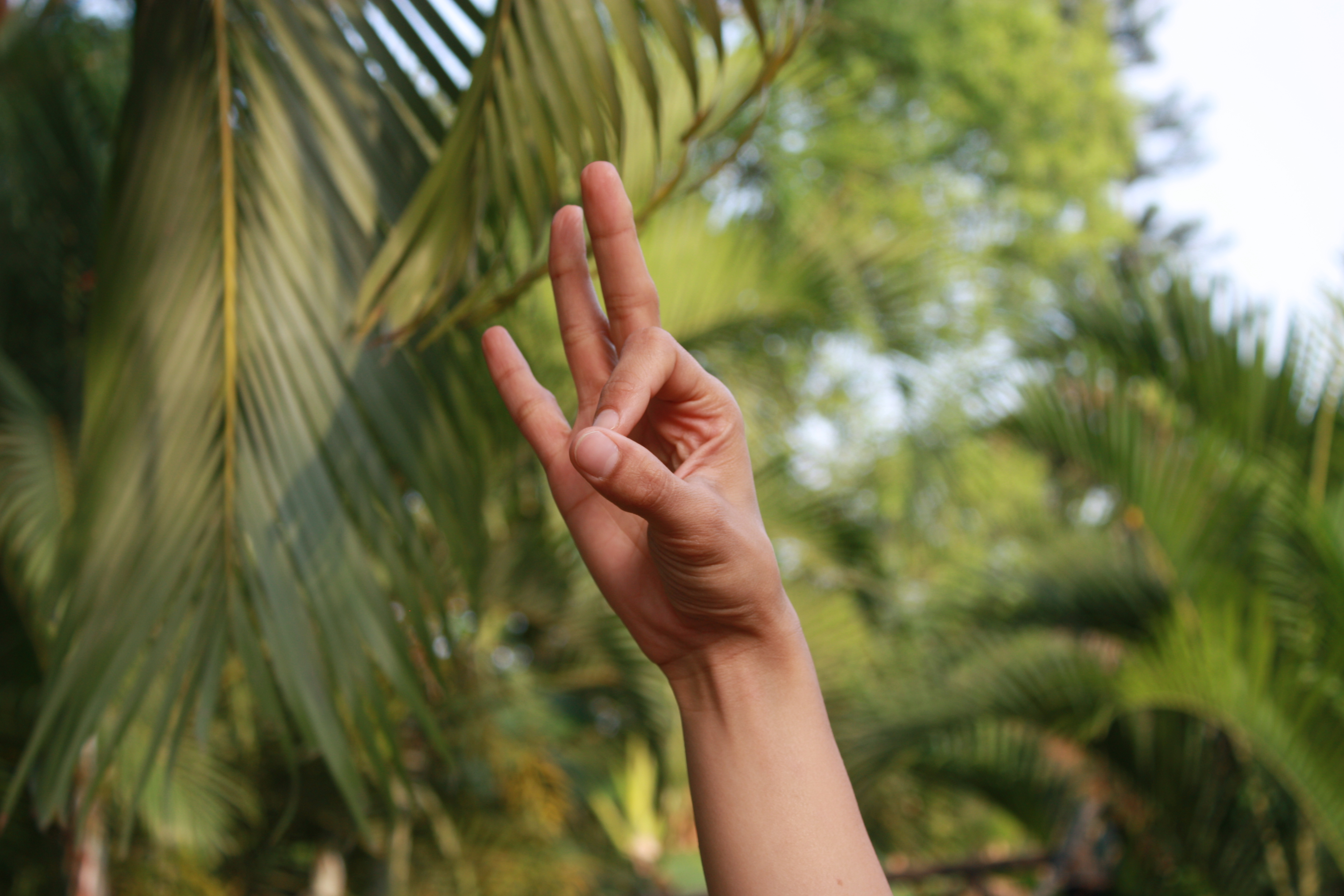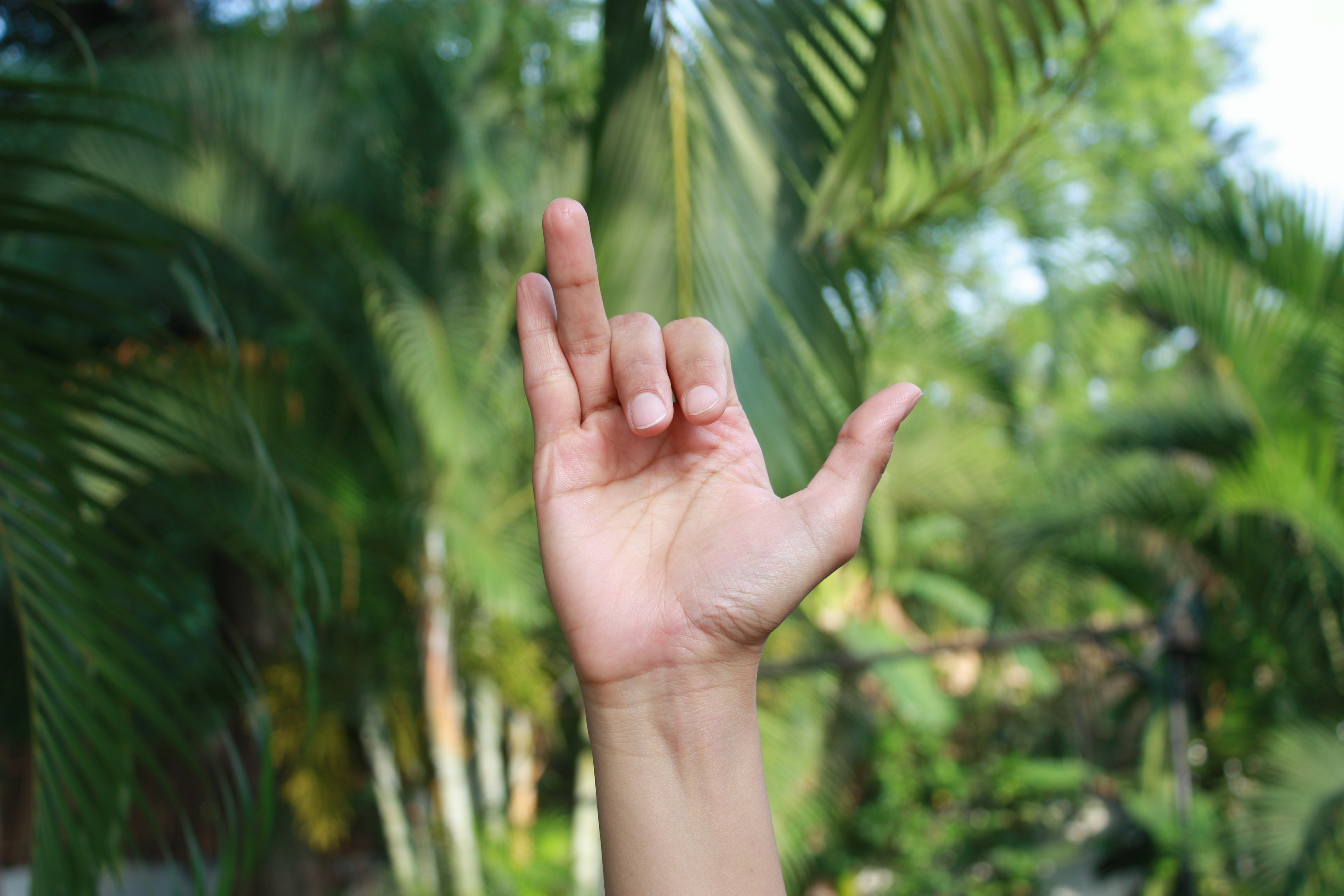 Bring your thumb, middle finger and ring finger together. Extend the remaining two fingers out.
