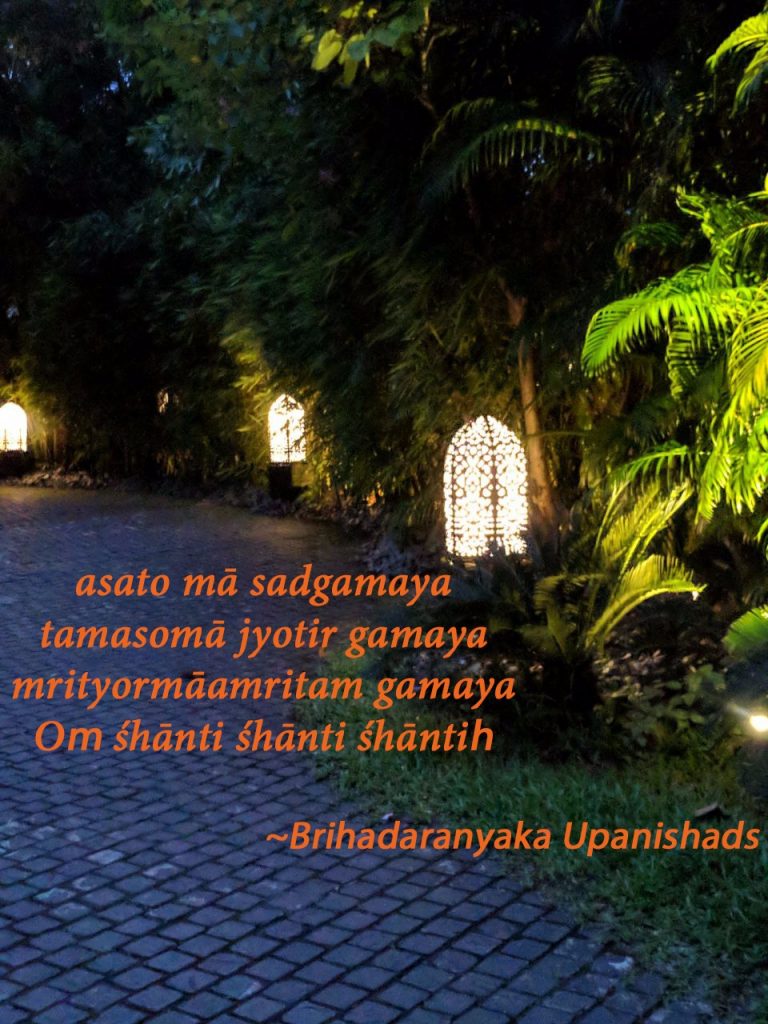 I learned the above shloka in the year 2009 when I went to SVYASA to do my Teacher’s Training Course. I found that I was the only one unfamiliar with it. When I went on to star teaching yoga myself, I learned from my students that this is a shloka taught widely in schools here in India. This shloka is found in the Upanishads and is a prayer to Light.