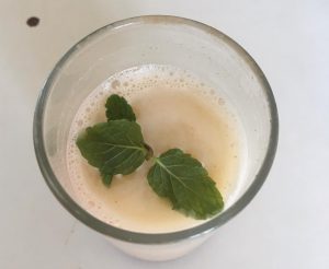 Sattu: besan (gramflour) with warm water and a sprig of mint.