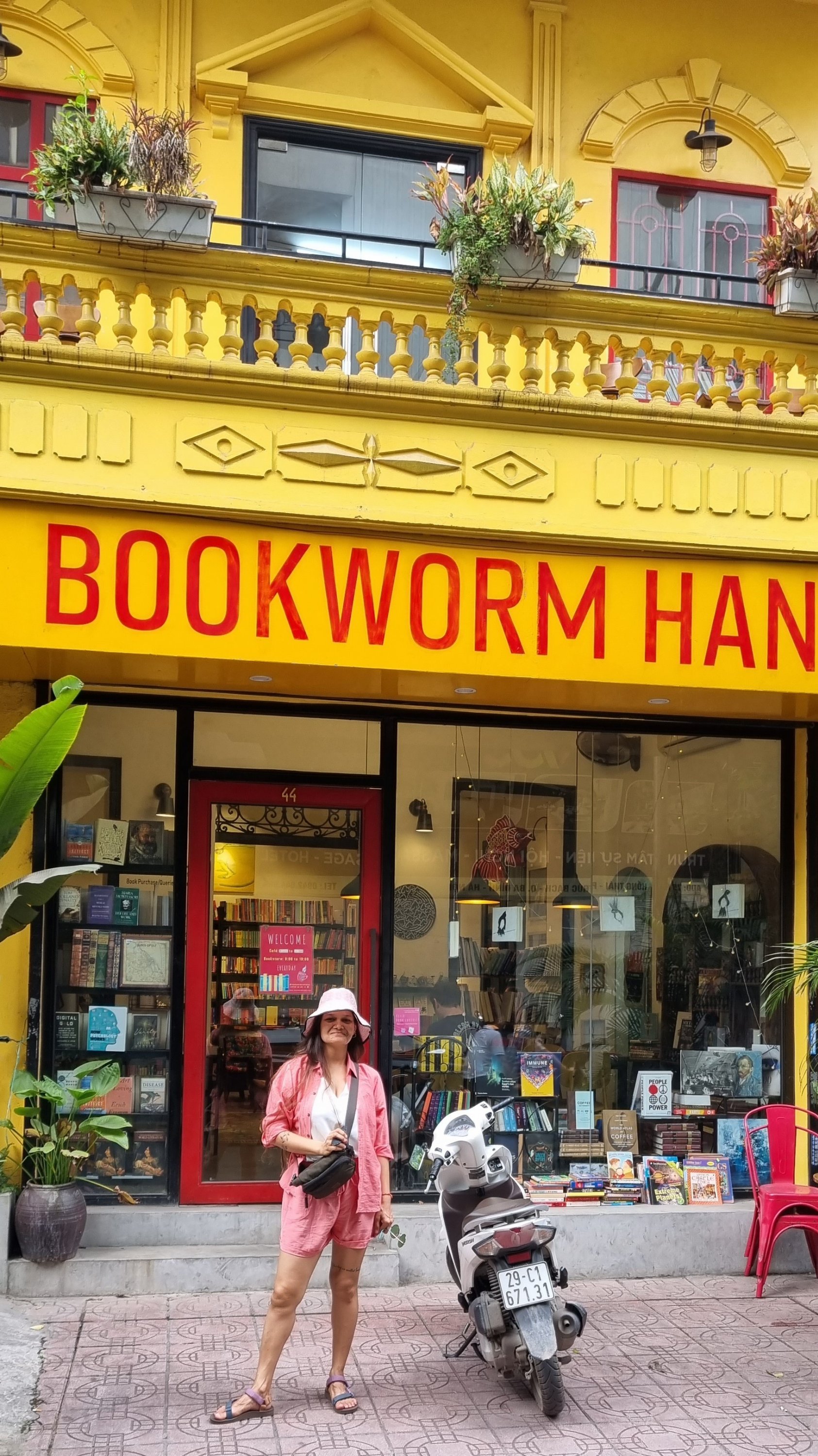 I often go to local bookshops when I’m traveling to a new place to hunt for books by local authors. Vietnam has a vibrant culture of literature (Hanoi even has a Temple of Literature!) and a Book Street (a serendipitous find). While looking for a stall selling books in English we ran into a young book lover who told us he’s attended a lecture by Bao Ninh and then told us to head over to the Bookworm where we would have better luck finding books in English. Sure enough, I found ‘Hanoi, adieu’ in their well-stocked racks.