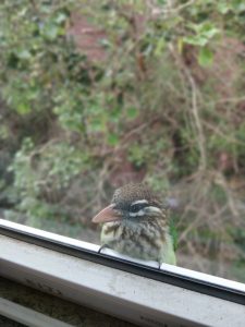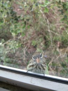 4. To come down, bring your left leg back to the floor in the same way you took it up. You should end in the Trikonasana again.